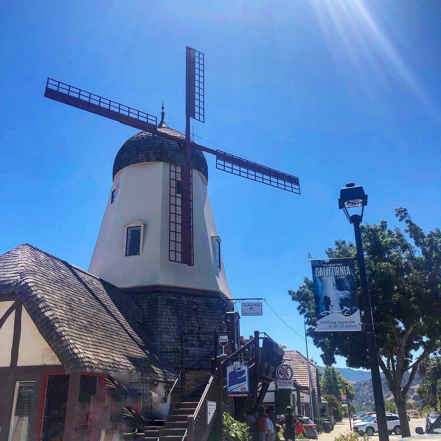 Next Stop: Solvang, a unos 100km al sur. Esta vez tomamos la ruta 101 que va paralelo a la 1 solo que no va sobre la costa. O sea tiene menos vista, pero también es más veloz puesto que no tiene tanta curva y contra curva sobre la montaña. Pero volvamos a este pueblito muy muy muy particular que creería que no tiene tanta prensa. Bah, al menos yo no lo había oido nombrar. La fundaron en 1911 unos daneses que flashearon Dinamarca en Estados Unidos. Toda la arquitectura, iglesias luteranas, los lugares de morfi, cerveza. Hasta había molinos de mentirita. ¿Y las tiendas de recuerdos? Había una de adornos navideños que era de película. Caminamos abajo del rayo de sol un buen rato entrando y saliendo de distintos locales en busca de aire acondicionado. Medio que nos derretimos. Ahí le chingaron (?). No me imagino ese calor en Dinamarca. ⁣