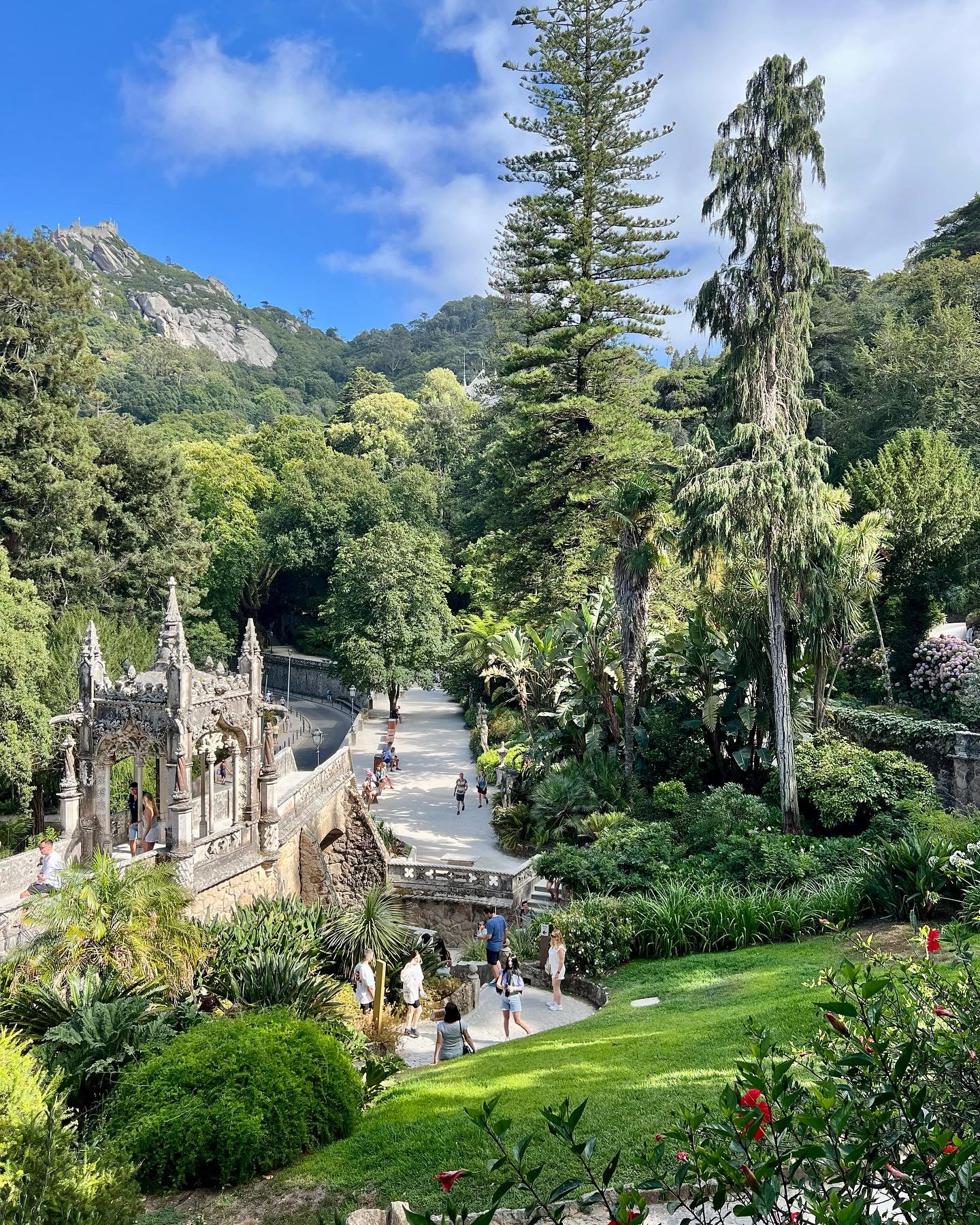 Después de que terminás de bajar todos los jardines, encontrás una capilla y también la casa que tiene un estilo neomanuelino que, por supuesto, no desentona con todo el resto.