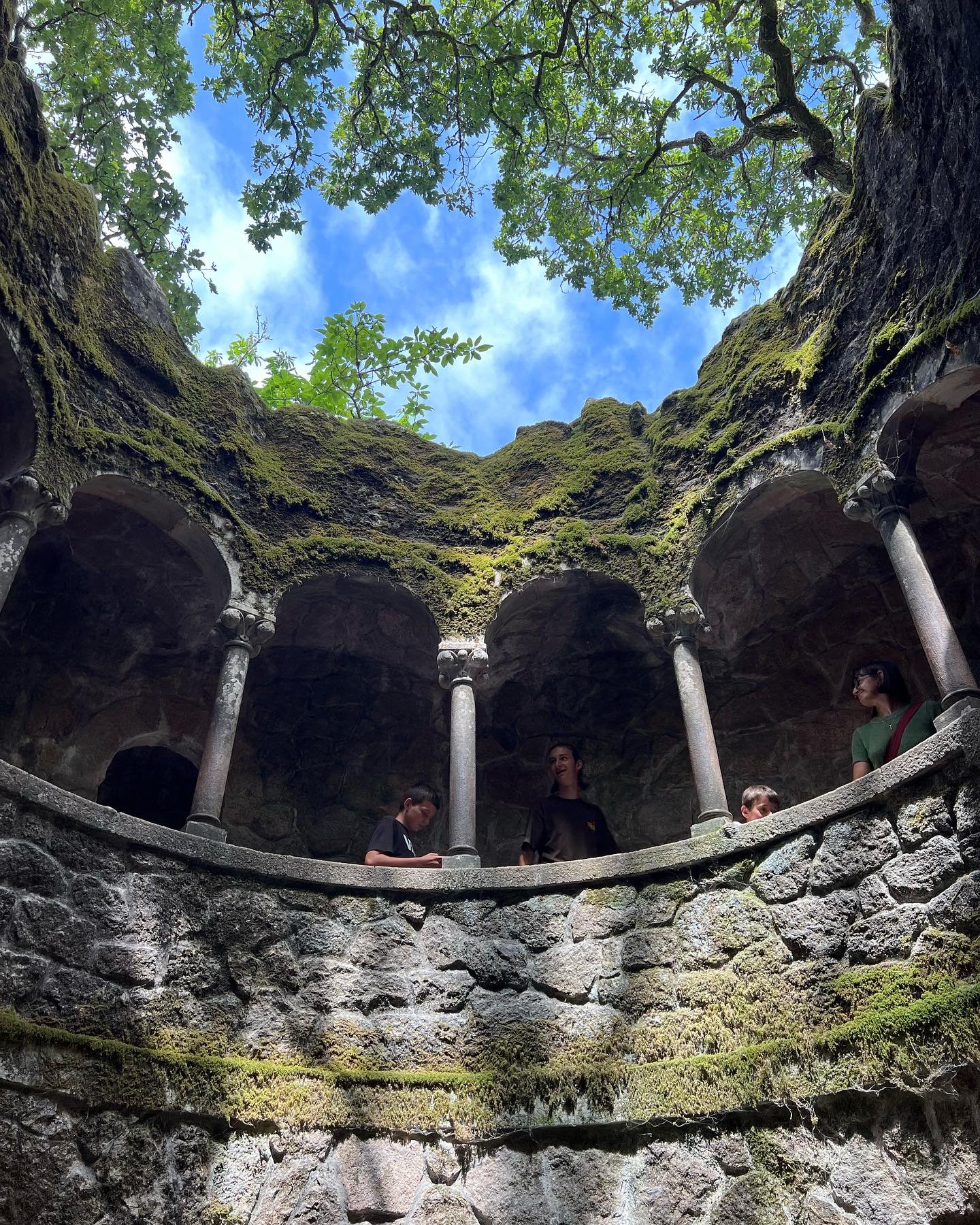 Entrás por la parte más alta y en serio al poner un pie adentro sentís que te metiste en un cuento… Los jardines bajando sobre la ladera de la sierra, verde… frondosa. Algunas cascadas, estanques, fuentes, las torres que te topás ahí medio random, las esculturas, las cuevas que devienen en laberintos oscuros. ¿Y el pozo iniciático? KEEEE. Ese se descubrió hace un par de décadas. Y si… era parte de algún rito iniciático de una orden secreta. A este muchacho se lo relaciona con los templarios y los masones. Este pozo en cuestión tiene varias referencias a La Divina Comida. La escalera tiene nueve tramos, como círculos del infierno o esferas del paraíso en la obra de Dante, de 15 escalones. Todo está lleno de simbología y algunas cosas aún hoy se desconoce el significado.