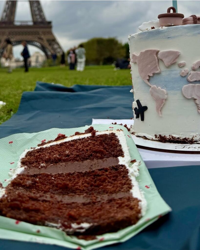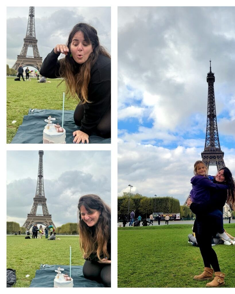 ¡La felicidad! Mi cumple en París y en familia. Organizamos días de paseo y la pregunta fue: “¿qué querés que hagamos el 26?” “Picnic en la Torre”, sin dudarlo, respondí. Para eso, ya me había encargado una torta. Si estaba sola, el plan era el mismo. Por supuesto que con ellos me parecía un sueño impensado.