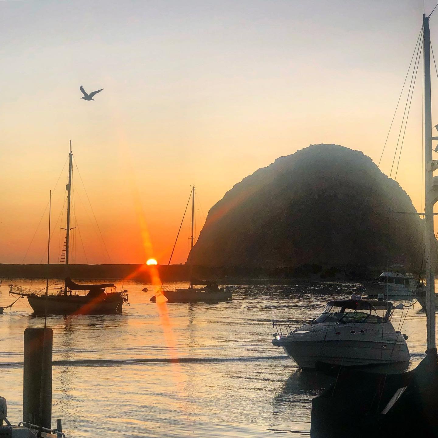 Volvamos a esa tarde en Morro Bay. Los gringos estaban cenando sobre los bellos restos que había en la marina. Nosotras compramos un heladito. No sé si aplicaba como postre del almuerzo o merienda. Caminamos buscando el mejor ángulo puesto que el coso ese en medio del agua (morro) podía no dejarnos ver el horizonte. No podríamos ver el atardecer propiamente dicho. La misión evidentemente fue un éxito.